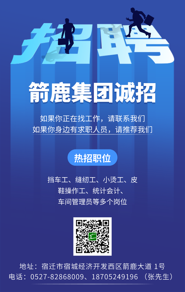 箭鹿集團總廠:宿遷市宿城經(jīng)濟開發(fā)西區(qū)箭鹿大道1號辦公樓一樓人力資源部;